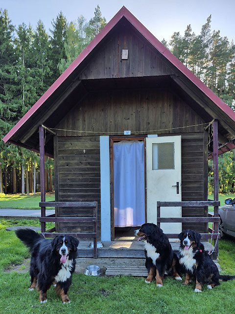 Již tradičně se klubová výstava konala v kempu Knížecí rybník u Tábora (a možná tady letos naposledy). Vydali jsem se tam opět z celou smečkou, ale vystavovali "pouze" tři, s pěknými posudky a výsledky. Nejlíp dopadl RADEGAST - v mezitřídě Výborný 3. RONDA v mezitřídě dostala známku Výborná a stejně tak i jejich máma OLIWIA - Výborná ve třídě vítězů. A kromě nás tam ještě Slunný dvůr reprezentovali ROSALINDA (výborná v mezitřídě), POLLY (VD v otevřené třídě), a QUINCY (VD v otevřené třídě). Děkujeme majitelům, že své pejsky přijeli na výstavu ukázat. Mimochodem, táta Rondy a Radegasta, Rover Riomadea Grande se stal nejlepším veteránem výstavy.